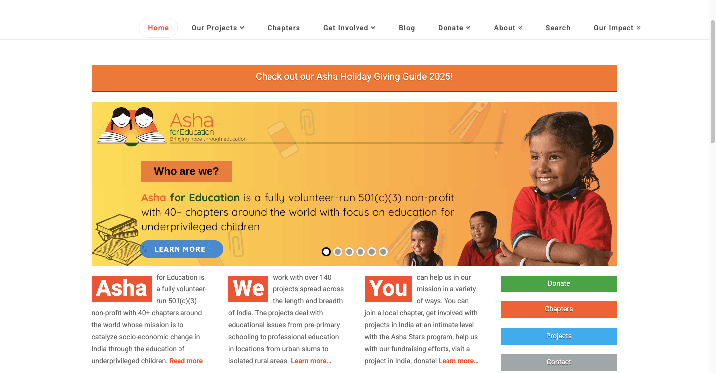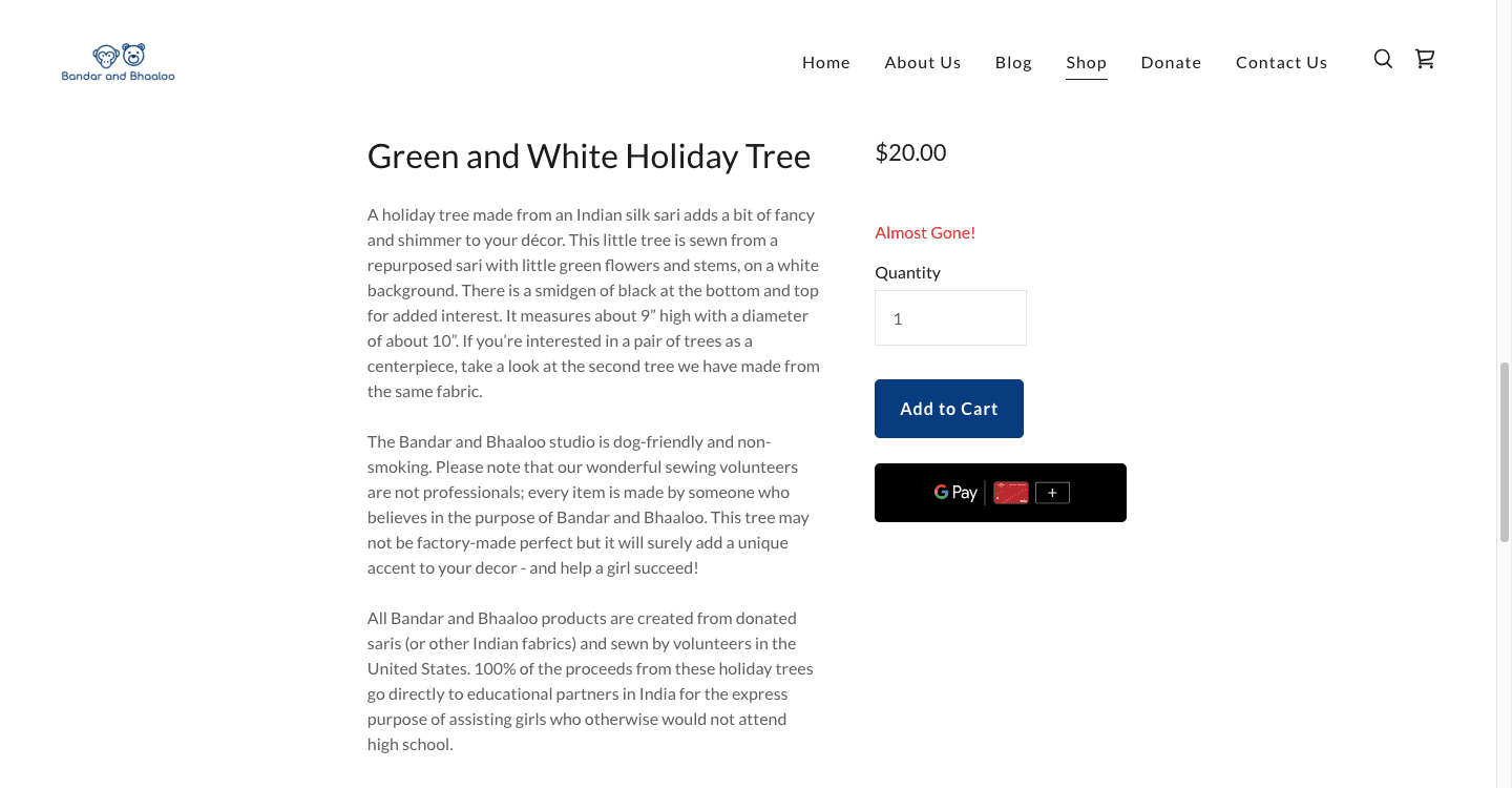 Not all visitors want to shop for stuffed animals, but they may still want to support girls' education in India. The donation page enables this support pathway, expanding the ways people can contribute to the mission beyond product purchases alone.