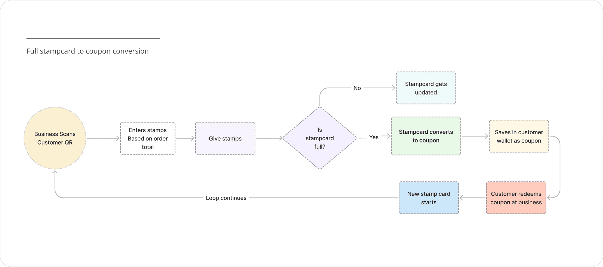 This shared architecture enables automatic conversion. When customers complete a stamp card, the final reward seamlessly becomes a redeemable coupon in their wallet, no manual steps for business, no friction, no drop off.